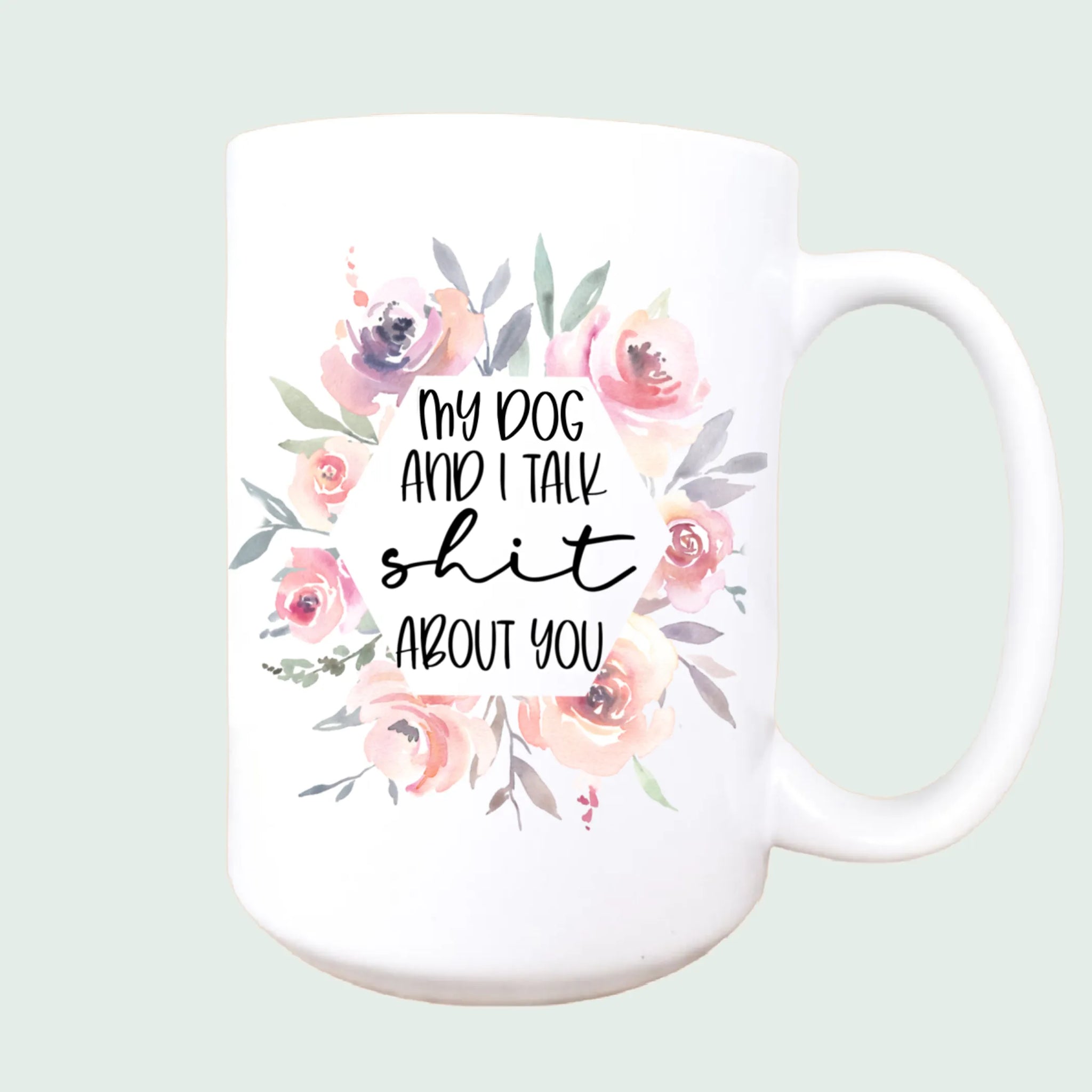 My dog and I talk about you ceramic coffee mug